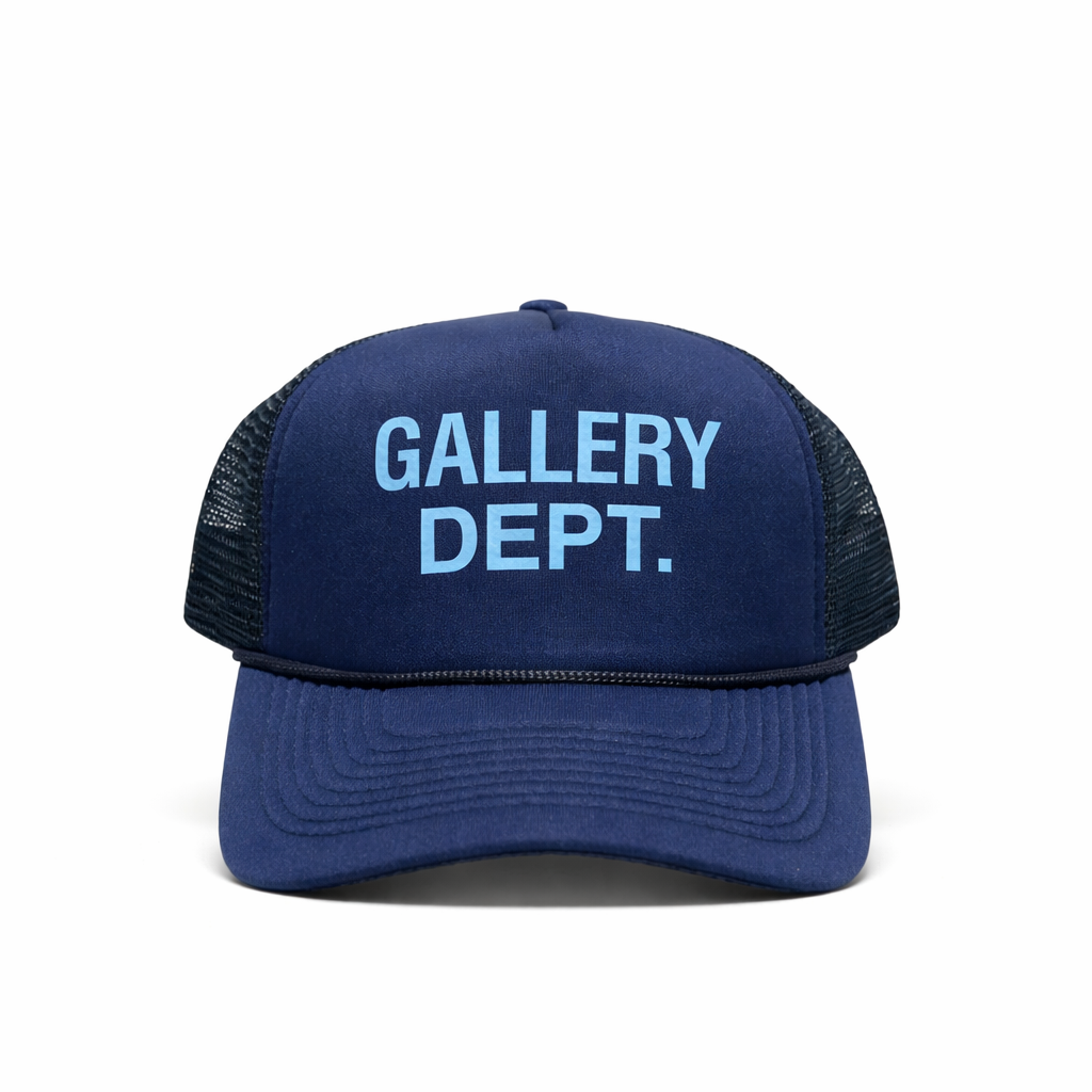 From Gallery Dept., the GD Trucker Cap in Deep Navy embodies a quiet, enduring luxury. Meticulously assembled, it pairs a structured front panel with a breathable mesh back for daily comfort. The deep navy tone anchors a range of outfits, while refined stitching and a restrained emblem reflect the brand’s commitment to longevity and character. This cap is designed to accompany your wardrobe for years, not seasons.