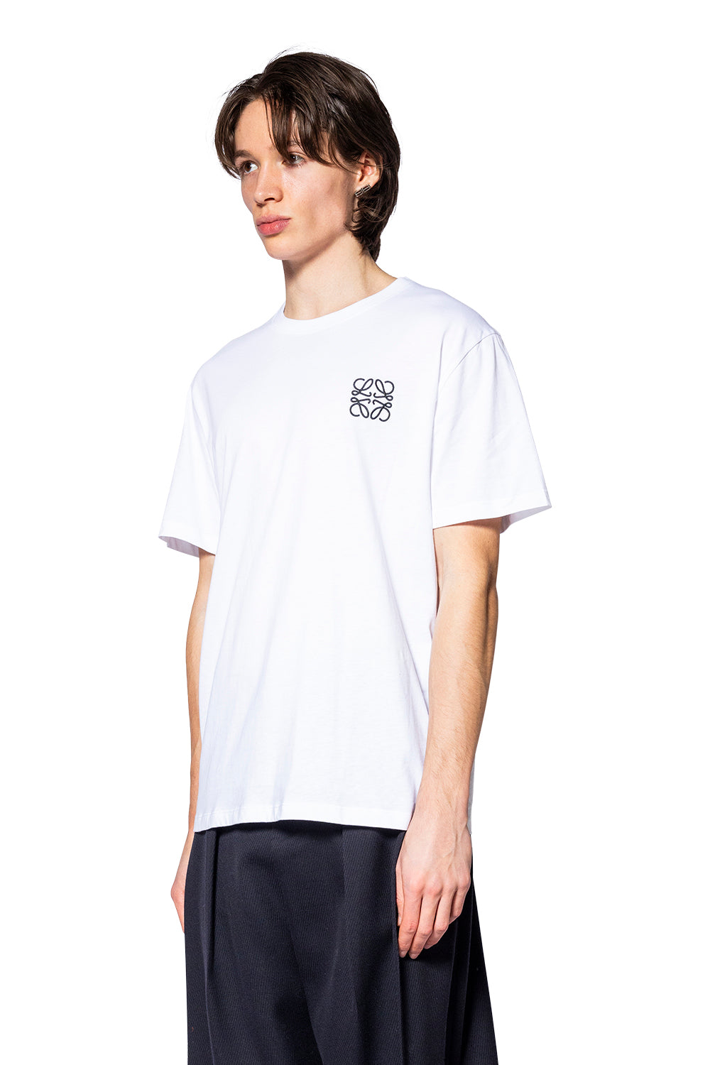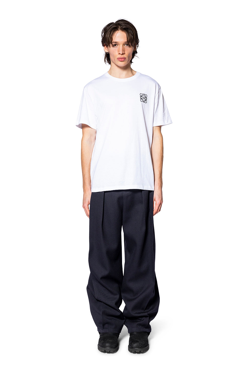 LOEWE's REGULAR FIT T-SHIRT WHITE is a refined essential that embodies the house’s disciplined craftsmanship and timeless luxury. Cut to a classic regular silhouette, it is crafted in lightweight cotton for a breathable, clean line that pairs effortlessly with tailoring or denim. The finish is understated and precise—flat seams, a sit-flat neckline, and careful stitching that signals durability through years of wear. This tee invites a quiet confidence, elevating the everyday with the integrity that LOEWE brings to every wardrobe staple.