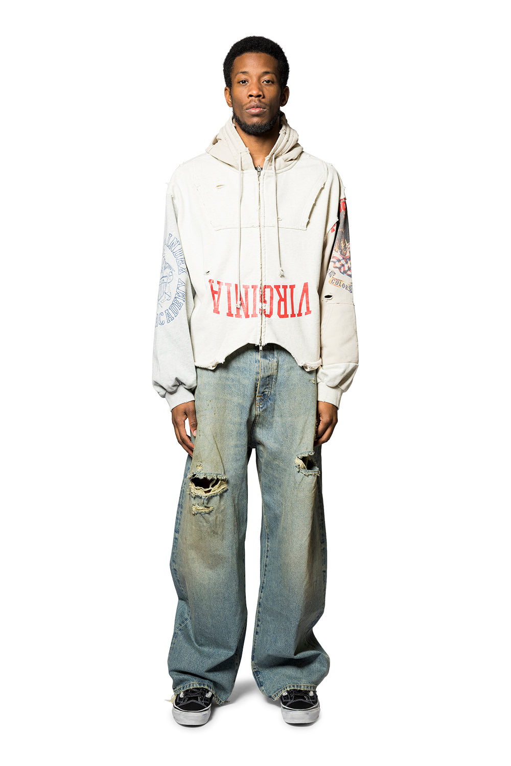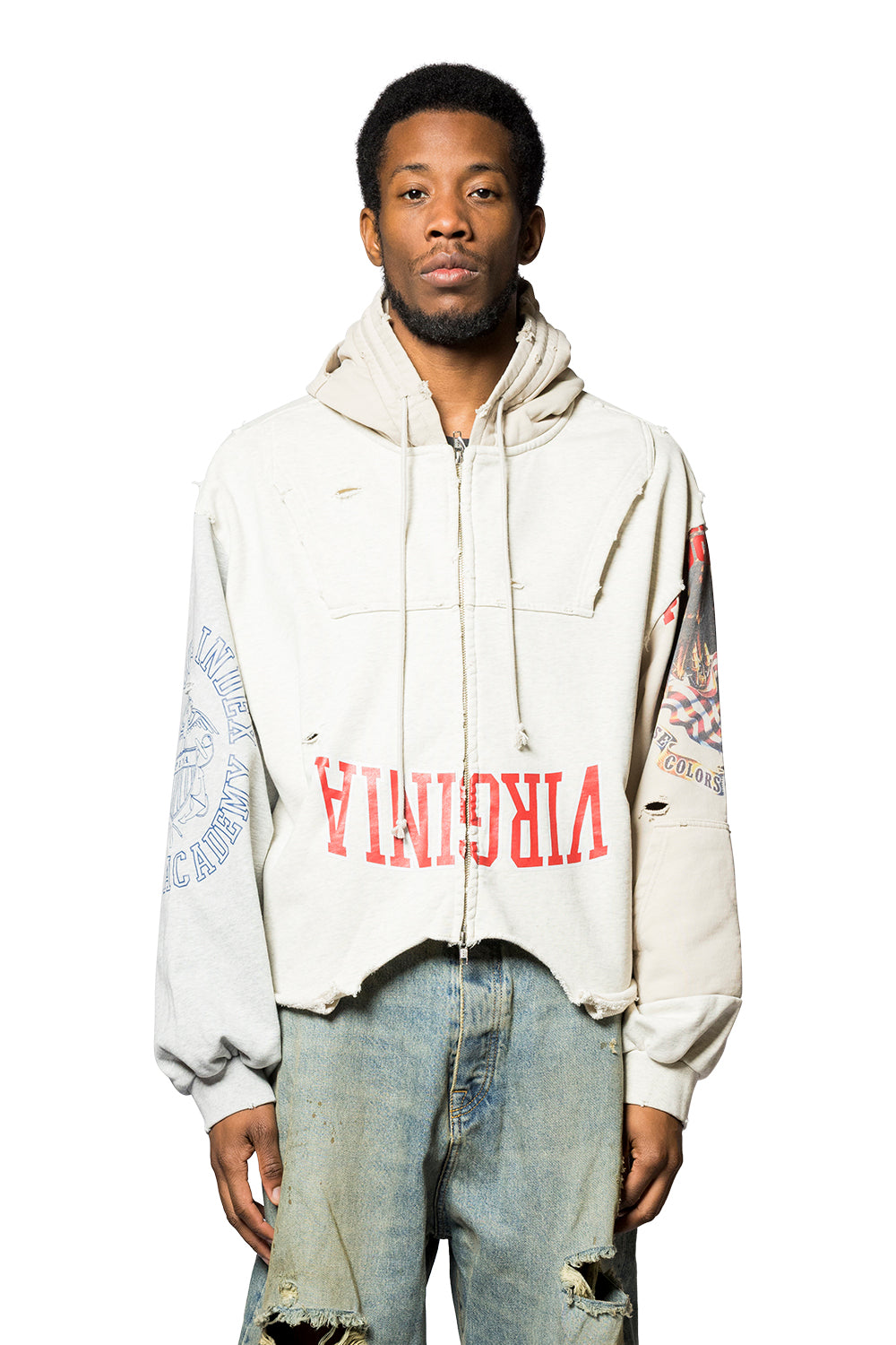 UPSIDE DOWN ZIP HOODIE MULTI IVORY