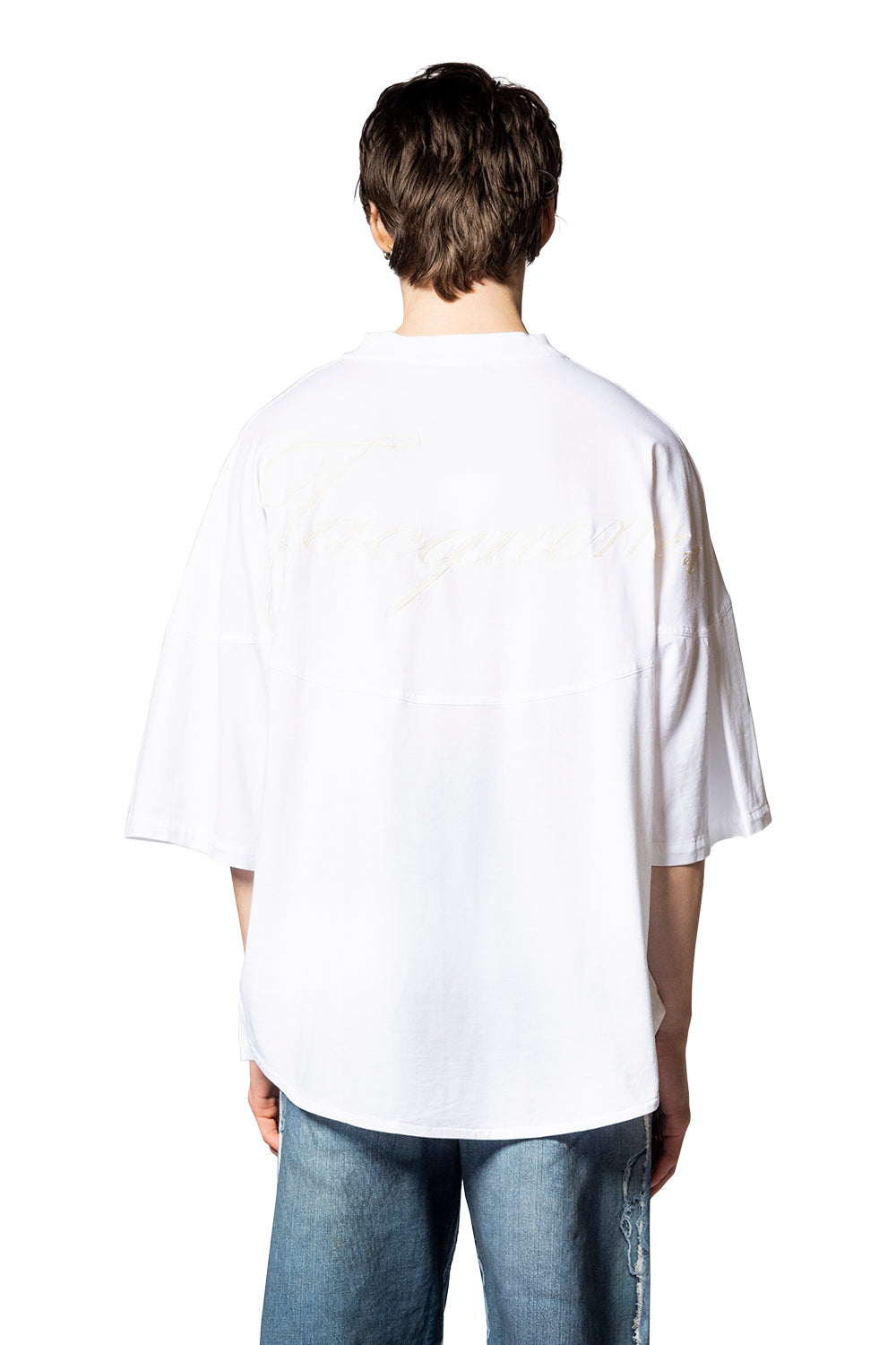 LE TSHIRT ATELIER MC 50's WHITE from Jacquemus embodies the quiet luxury of a modern staple elevated by craft and provenance. Cut from pure cotton jersey and assembled in Portugal, it balances everyday ease with atelier-level attention to detail. The silhouette remains timeless, while subtle branding—an embroidery inspired by Simon Porte Jacquemus’ handwriting—adds a refined texture that rewards close inspection. Every stitch speaks to a careful lineage: crisp rib-knit neck, pristine seams, and a finish designed to endure season after season.