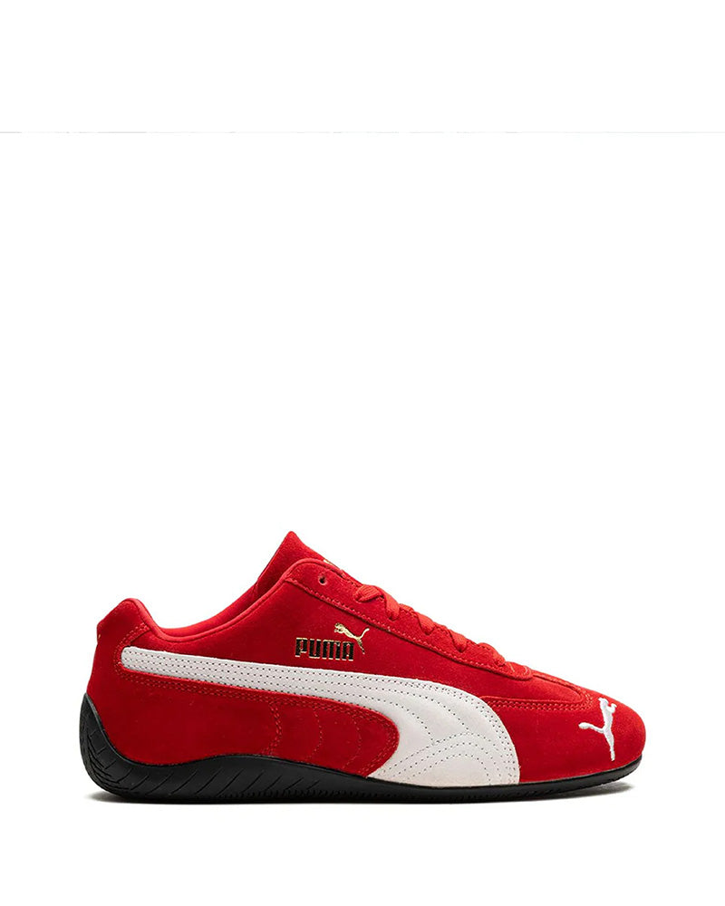 The SPEEDCAT OG RED-WHITE is a motorsport-inspired icon from PUMA that blends a low-profile silhouette with timeless elegance. Crafted with a rich suede upper reinforced by synthetic overlays, it offers durable support and a refined texture. The cushioned midsole and streamlined profile contribute to all-day comfort and a silhouette that moves from street to casual track with effortless poise.