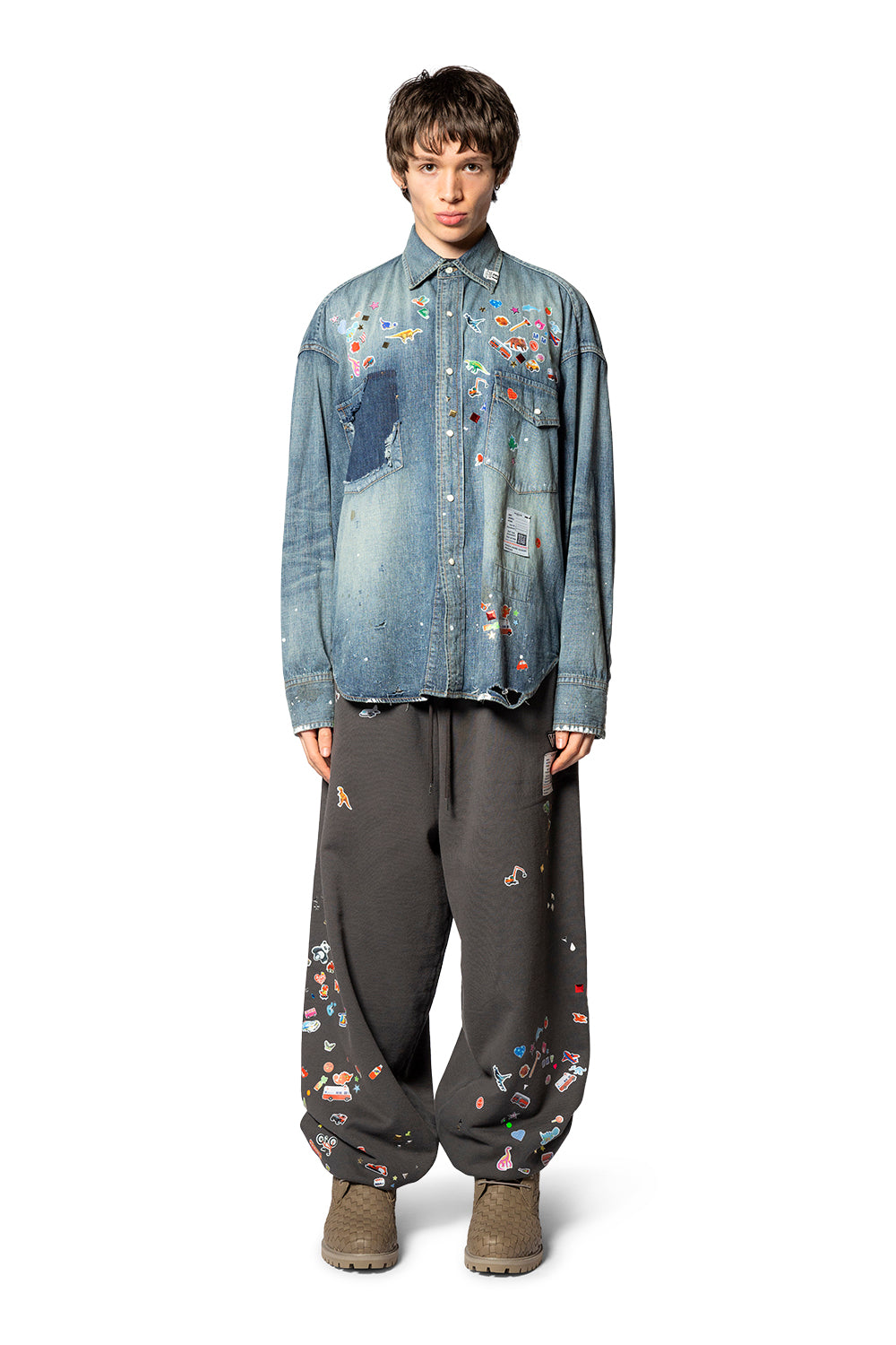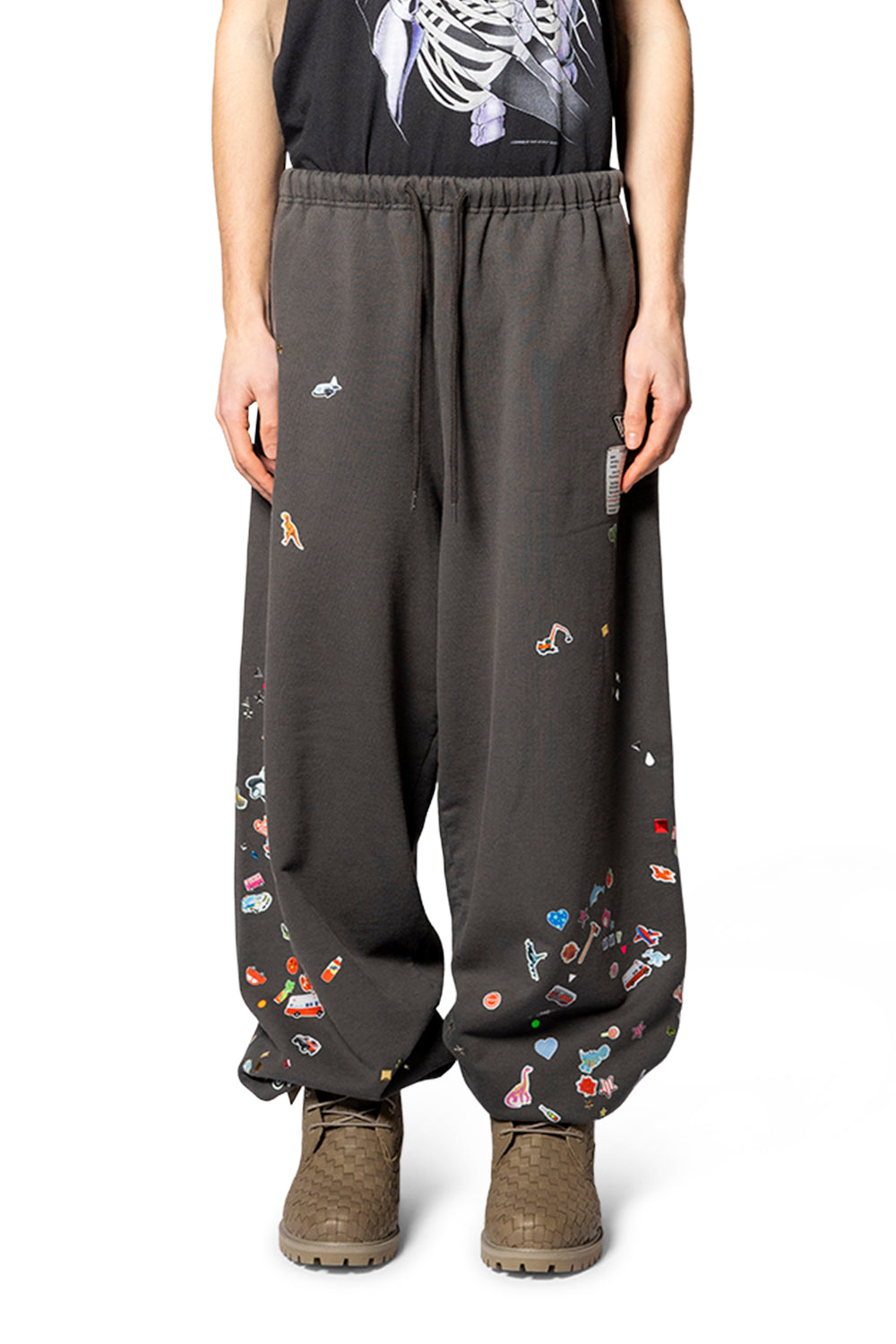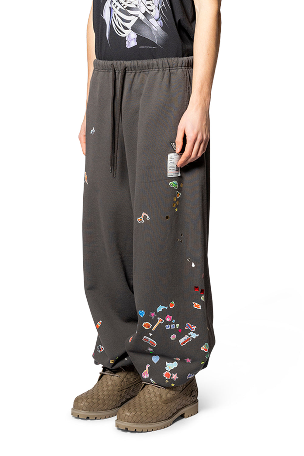 From Maison Mihara Yasuhiro, the KIDS STICKER PANTS BLACK fuse meticulous craft with contemporary whimsy. Cut in a timeless silhouette and assembled from a soft, durable cotton blend, these pants move with active youngsters while holding shape through many adventures. Reinforced seams, a thoughtfully designed waistband, and careful finishing ensure long-lasting wear from classroom to weekend explorations. The sticker motif—a signature detail—appears as a refined graphic that echoes the label’s distinctive, subversive elegance, applied with fade-resistant inks for enduring clarity. Produced in limited runs, each pair carries a quiet provenance that honors the house’s heritage of precise tailoring and disciplined attention to detail.