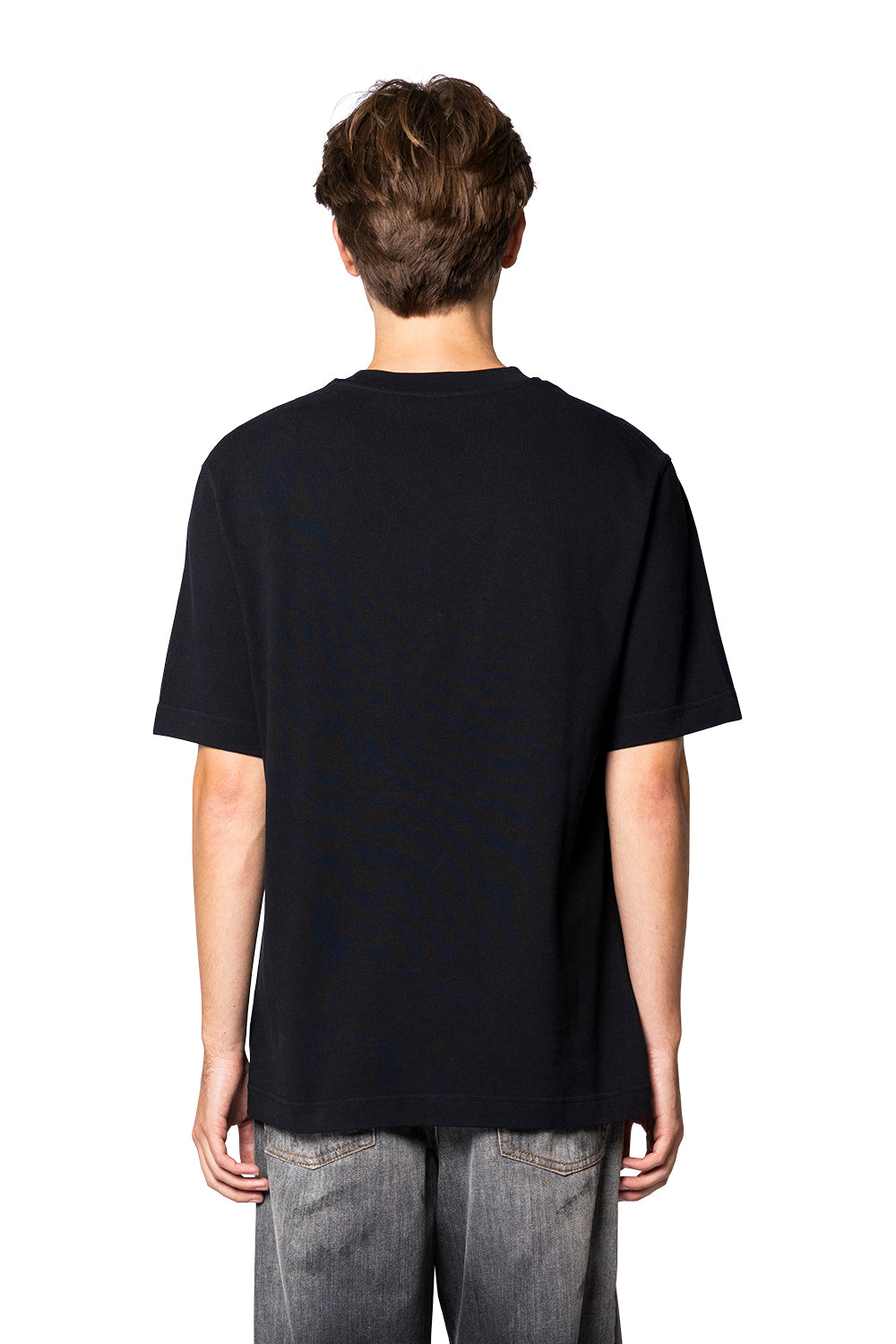 • Relaxed silhouette with ribbed crew neck and short sleeves.