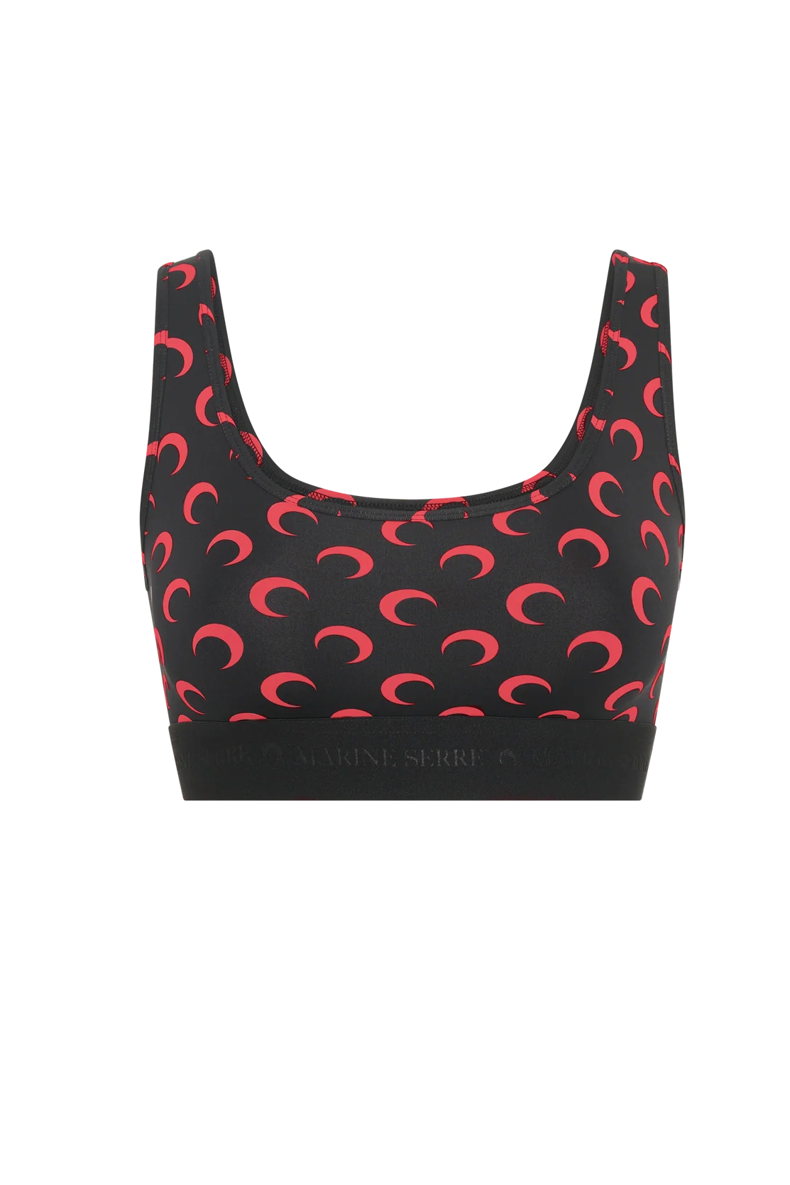 Moon Printed Jersey Sports Bra in Black/Red from Marine Serre embodies the house’s ongoing invitation to reimagine activewear as couture. Meticulously cut and knitted in premium stretch jersey, it pairs a sculptural silhouette with a soft, breathable hand. The moon motif—familiar from Marine Serre's archives—travels through the design as a quiet signature of provenance, lineage, and Parisian atelier craft. Each piece is finished with disciplined attention to edge and fit, ensuring enduring comfort without compromising style.