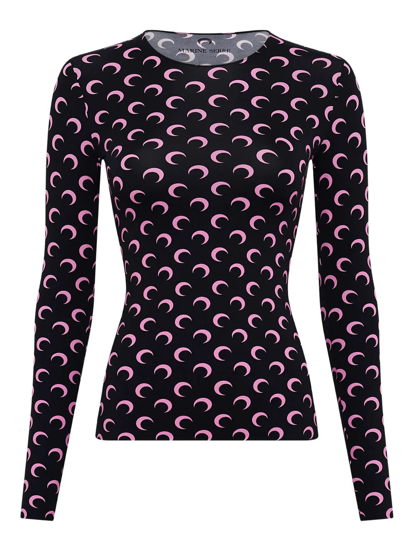 RECYCLED MOON JERSEY LS CREWNECK TOP BLACK/PINK
