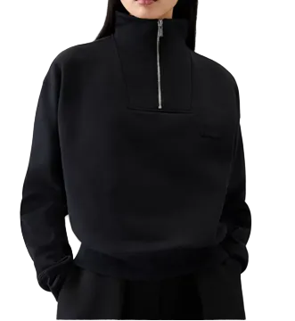 • Zip-fastened high neck collar with ribbed trims for versatile wear