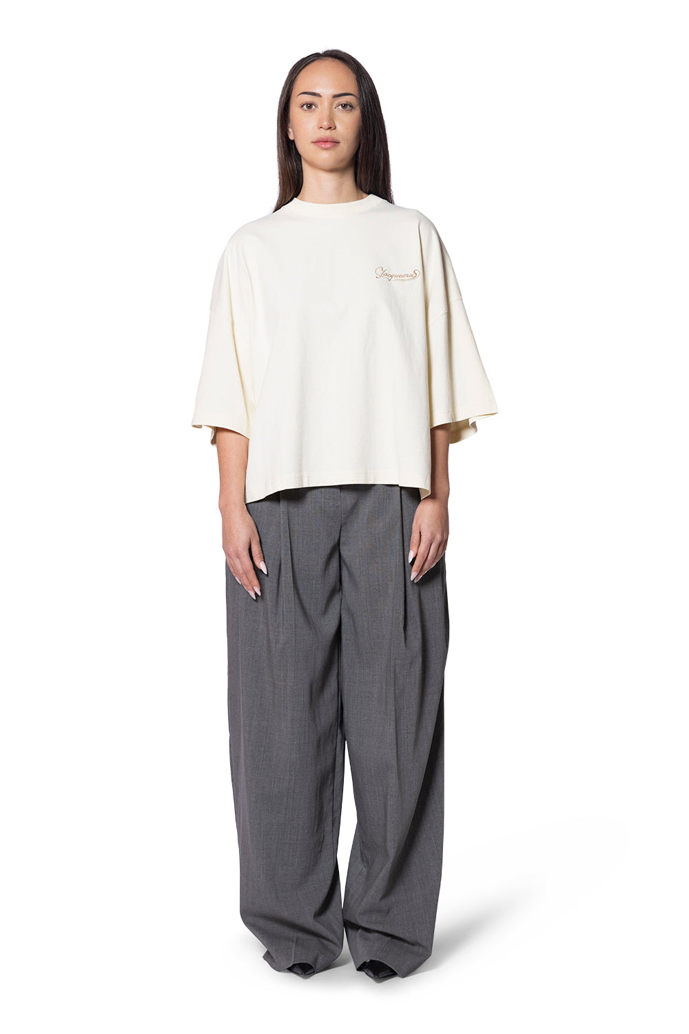 Jacquemus presents LE TSHIRT CORTO UNI CLUB BEIGE, a study in quiet luxury. Rooted in the house's signature clarity and timeless silhouettes, this short-sleeve tee in soft beige embodies the refinement of everyday dressing. Crafted with restraint and a respect for provenance, it pairs easily with both casual and refined wardrobes, inviting a sense of effortless elegance that endures beyond seasons. Its beige tone is versatile, pairing with denim, tailoring, or airy fabrics alike.