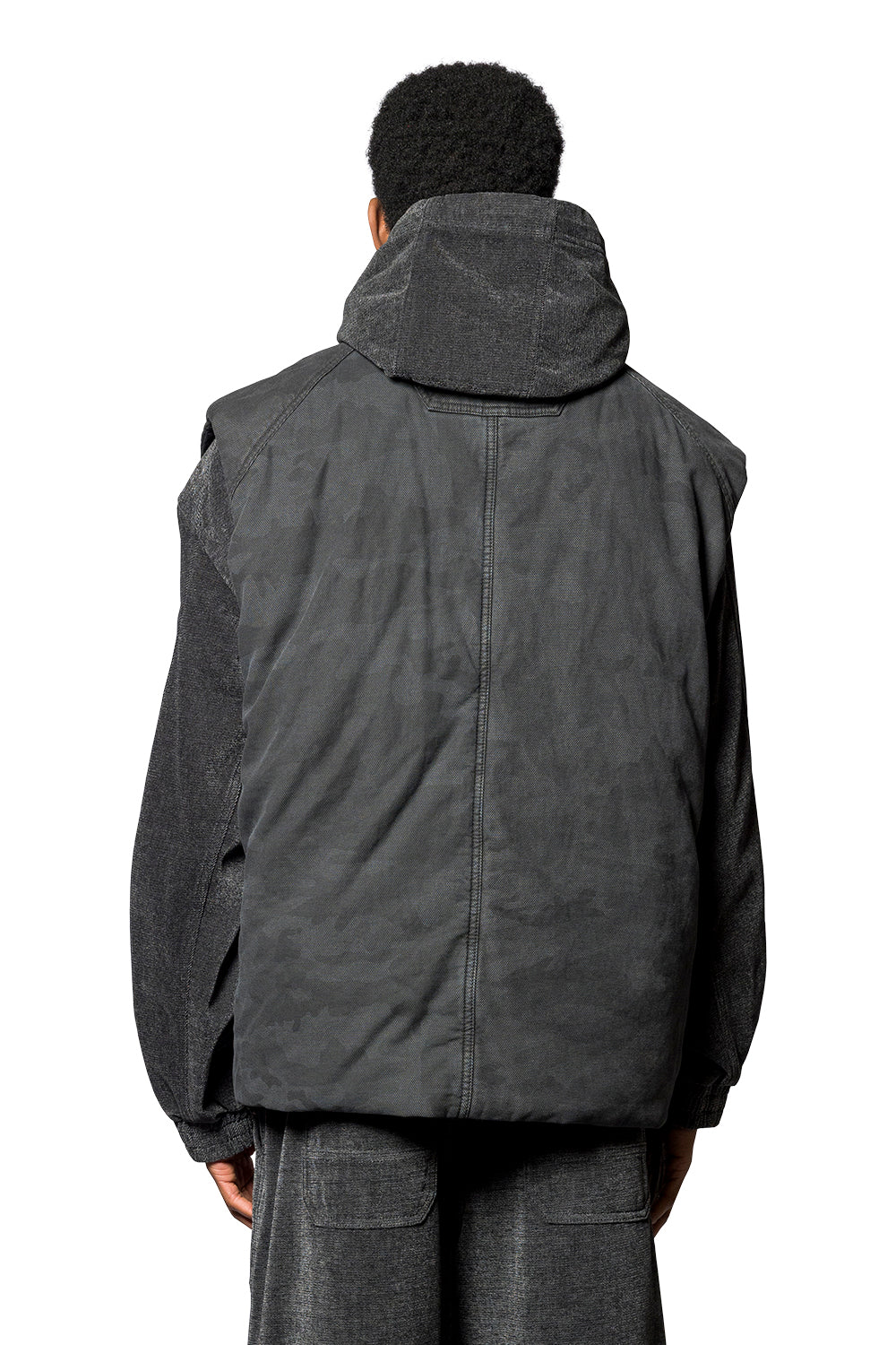 From Juun.J, the Seoul-based label celebrated for its subversive tailoring and distinctive camouflage, comes the Reversible Camouflage Vest in Black. Crafted with precision, the vest pairs durable premium materials with a refined silhouette, designed to endure as a timeless wardrobe staple. Its reversible construction yields two expressions in one: a discreet camouflage motif on the exterior and a versatile black finish on the reverse, enabling two looks without compromise. The result is a piece that blends contemporary edge with lasting craftsmanship.